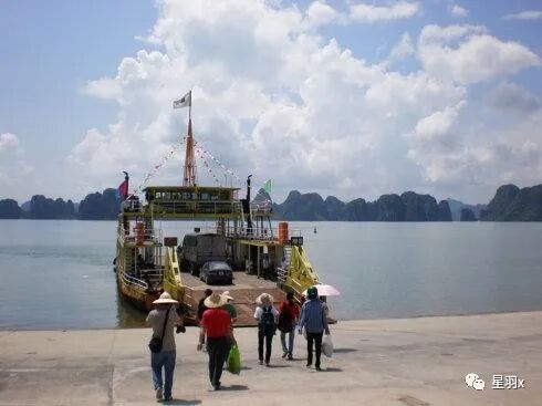 我在码头上坐了一会儿,有船到了,一群中国口音的人走了下来,跟着导游上了一辆停在路边的大巴,开走了,又有一辆大巴开来,走下一群中国人,我趁机上去搭讪,才知道这些人是下龙湾过来的,在这里住了一个晚上,现在回下龙湾,他们这次旅游时间一周,要付出五千多,自费项目还不包括在内。