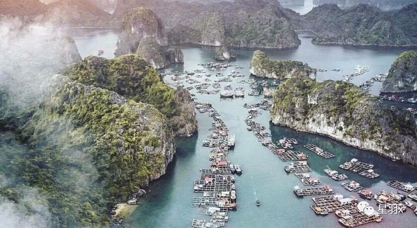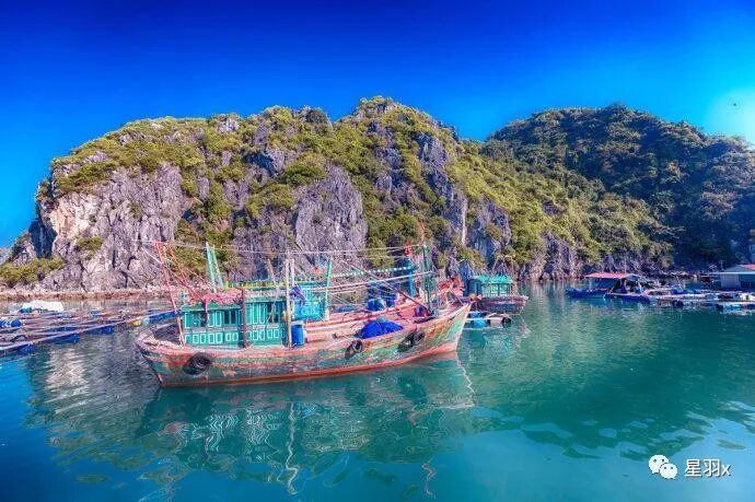 没走多久就到海边了,一个一个的海湾,很多码头,最后来到尽头的一个海湾,再过去没有路了,这里有一个客船码头,也有一些旅馆等旅游设施,长长的鱼排一直伸到海里,还有一些用来当海上酒家的船只停在一边,外面就是美丽得让人震撼的喀斯特石山群,这里对面就是下龙湾,与之其实风景共享的,只是中国人只知道下龙湾,不知道吉婆岛而已。