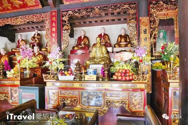 越南的庙宇与中国不同,中国的寺庙高大庄严,但越南寺庙却很低矮,与一般的民居差不多,供台上的菩萨不是一个,而是一批,前面一排至少七八十来几个,然后一层层的进去,中间很多宗教气息浓郁的装饰,很有立体感,估计菩萨呆在这种地方,与百姓更亲近吧。