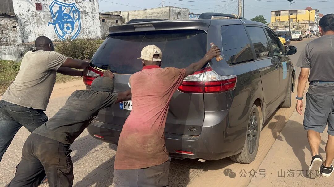 2024年12月9日下午到达塞内加尔济金绍尔,在几内亚比绍总领事馆,十几分钟办理好六人的签证后,开车前往预订的民宿,经过市中心时,汽车的离合器突然不起作用,加油时发动机空转,汽车不动。