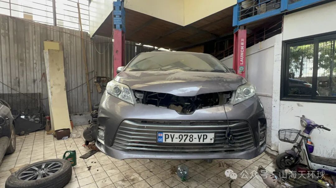 环球自第七个月,在塞内加尔的济金绍尔,即将进入第35个国家几内亚比绍时,丰田塞纳汽车突发故障,当地黑人师傅几个小时检查,建议返回达喀尔维修,经华人超市老板推荐,联系到修理厂胡老板。人与汽车一起乘坐轮渡绕行冈比亚返回达喀尔,修理厂黑人师傅经过一个星期的折腾,拆开变速箱又装回来,试车二十多公里后,故障依旧。在达喀尔既找不到这款车的变速箱,也找不到配件,只有从国内发货,发货商明确没有原件,只有仿制件,原厂部件都出现故障,仿制件质量受到质疑,而且临近年关,至少需要15天才能到货。这些问题给自驾队伍带来巨大的冲击。
