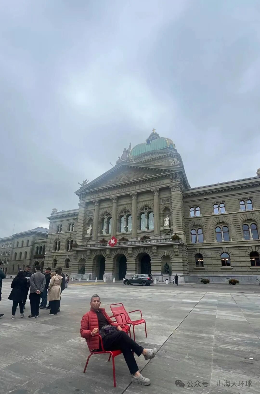 在瑞士首都伯尔尼国会大厦前休闲休闲。