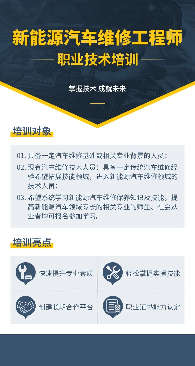 (3)希望系统学习新能源汽车维修保养知识及技能,提高新能源汽车领域专长的相关专业的师生、社会从业者均可报名参加学习。