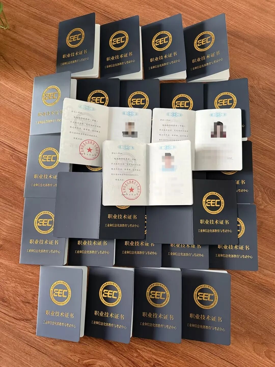 1. 权威认证:培训结束后,考核合格的学员将获得由工业和信息化部教育与考试中心颁发的“电池维修保养”职业技术证书,为你的职业发展增添权威认证。