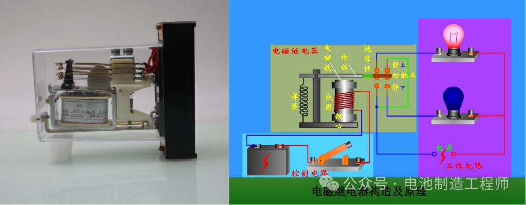 继电器是电动汽车和储能系统中至关重要的组件,主要用于控制电池的充放电过程,确保电池系统的安全、高效运行。其主要结构包括继电器本身、保护电路和控制信号电路。继电器本身由铁芯、线圈、触点等部分组成,具有使控制电路断开或接通的功能。