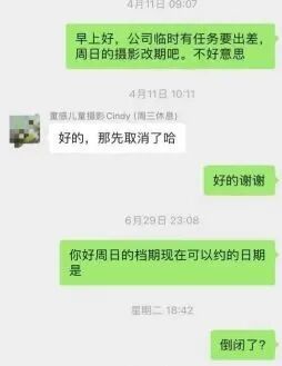 今年6年左右,有消费者发现童感多地门店关停了,一股不好的预感涌上心头,于是开始联系门店想兑现拍摄服务。