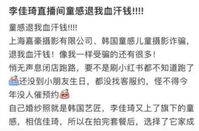 有多位网友发帖控诉称:在李佳琦直播间购买的摄影套餐,在还没拍摄的情况下被商家引导核销了订单。如今,该商家的门店正在接连关闭,无法为消费者提供约定的拍摄服务,也无法办理退款。对此,李佳琦方面的回应是:已收到反馈并联系品牌商家,最初给到解决方案是就近服务或退款;后续由于商家关店,则只能替换成“环球影城双人卡”等补偿。