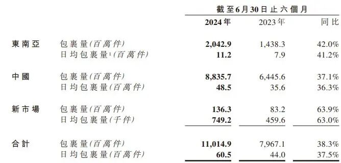 2024年上半年,极兔在东南亚市场的包裹量达到10.2亿件,同比增幅30.8%,日均包裹量为1,120万件。