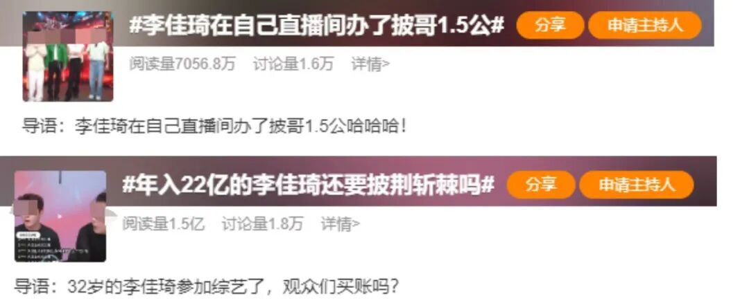 近日,随着《披荆斩棘》第四季节目的播出,李佳琦再一次成为网友们讨论的焦点,#李佳琦在自己直播间办了披哥1.5公#、#年入22亿的李佳琦还要披荆斩棘吗#等话题相继登上热搜。