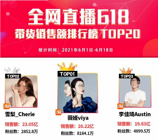 2021年是雪梨的直播带货巅峰期,在当年的618大促中,她以23.05亿的销售额,击败李佳琦成为淘宝“二姐”,与“一姐”薇娅仅差3亿。