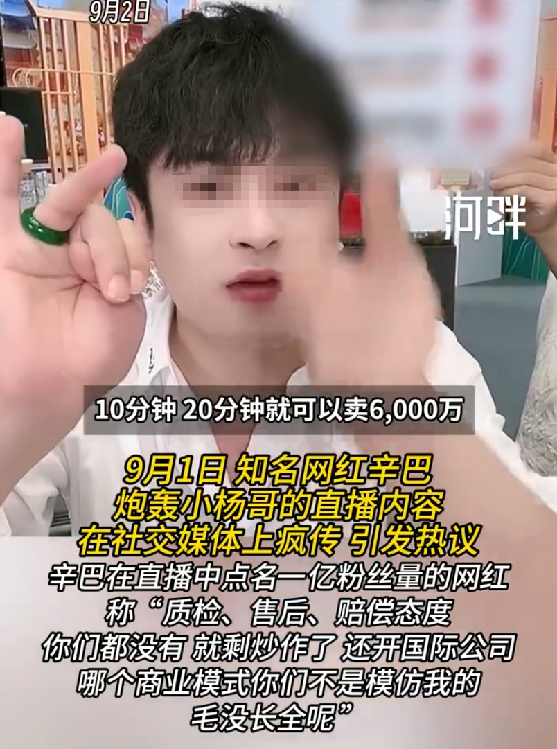 9月1日,一段辛巴在直播中怒骂小杨哥的视频在网上疯传。