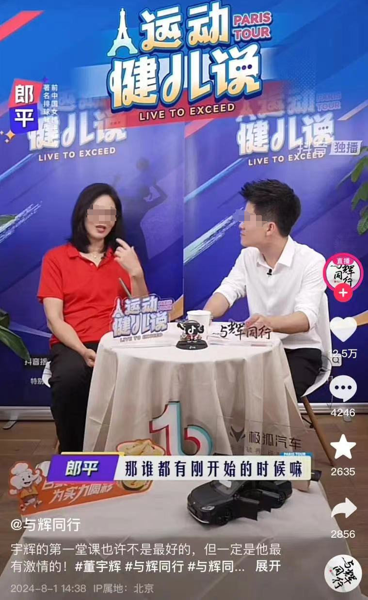 从8月7日复播开始,据统计董宇辉在一个月内亲自下场直播的场次为11次,其中多次都是和奥运健儿以及其他嘉宾的访谈。很明显是要弱化自身带货主播的属性,通过各种对谈来强化文化人的光环。