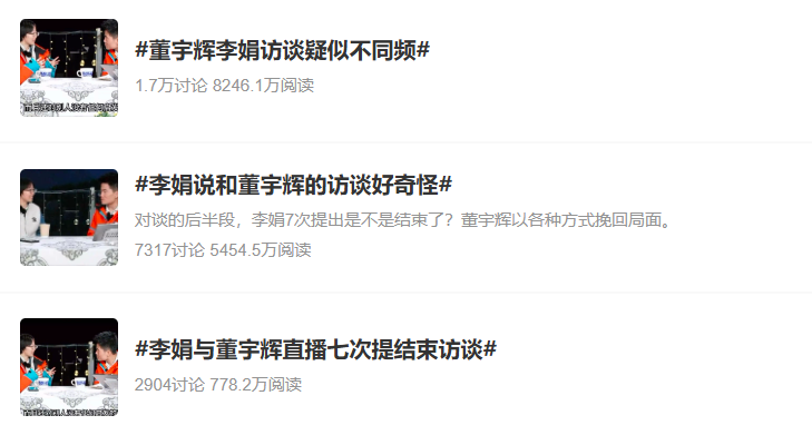 在社媒平台上所流传的直播片段中,能明显看出两人的对谈完全不在一个频道上,直播结束后相关话题更是直接冲上微博热搜。