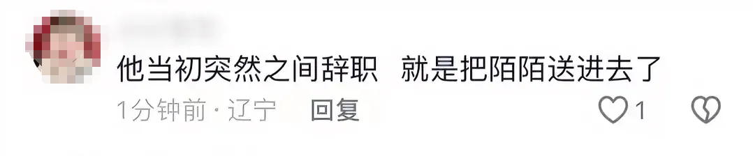 有人在评论区爆料:“他当初突然之间辞职 就是把陌陌(沫沫)送进去了”。