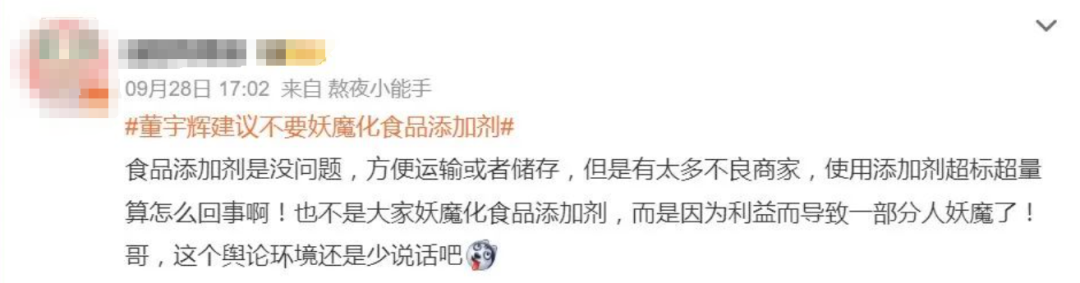 就像一些网友说的,他的这番话并没有什么错,他的主要意思是让大家对于食品添加剂不要那么敏感和焦虑,很多科普食品添加剂的视频、博主都会如此说。