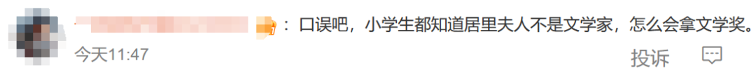 不过,也有网友觉得他称居里夫人获得诺贝尔文学奖极有可能是个口误,毕竟“小学生都知道居里夫人不是文学家,怎么会拿文学奖。”
