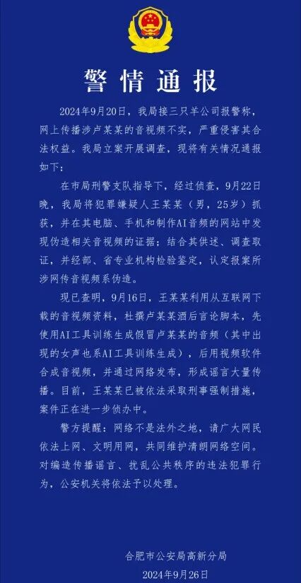 网友们之所以有此一问,与前段时间卢文庆刷屏全网的录音事件不无关系,该录音已经被警方证实,确实是AI合成、伪造的,属于恶意造谣。