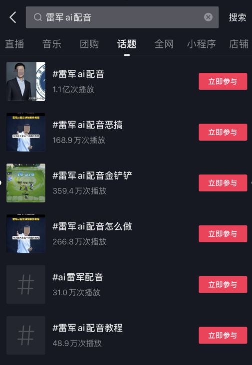 不仅如此,还衍生出了如“雷军AI配音怎么做”、“雷军AI配音教程”等一系列相关话题,播放量最高超过200万次。