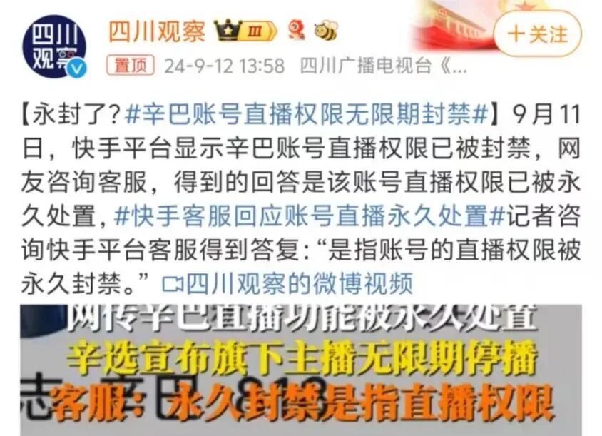 而且,据快手当时的口风,辛巴账号的直播权限“已被永久处置”,属于“无限期封禁”——谁都没想到这一封竟是“永别”,辛巴将如自己所预告的那样,退出直播带货这个行业。