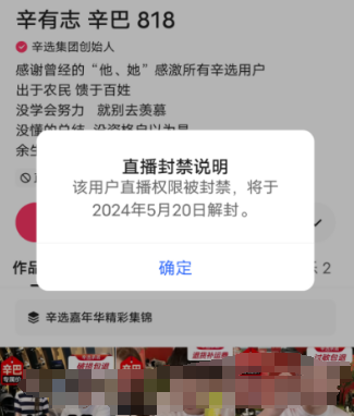 而就在今年4月,辛巴及辛选旗下众多账号再次遭遇封禁,起因是辛巴在直播中言辞激烈地指责快手平台,此次封禁直至5月20日才得以解除。