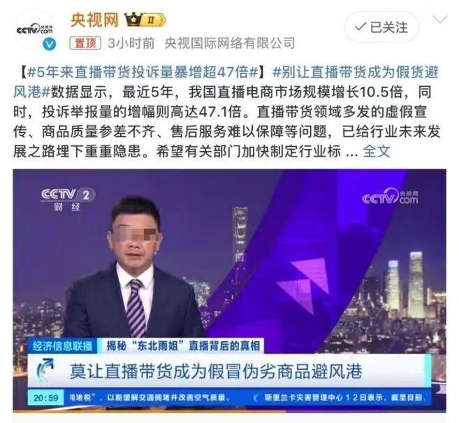 据央视财经10月13日晚报道,数据显示,最近5年,我国直播电商市场规模增长10.5倍,同时,投诉举报量的增幅则高达47.1倍。