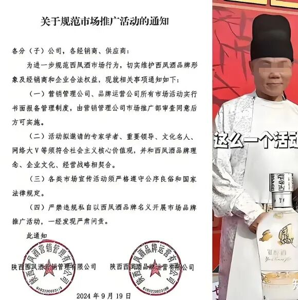 随后又紧急发布通知,规范市场推广活动,言下之意即与西安西凤酒邀请司马南一事割席。