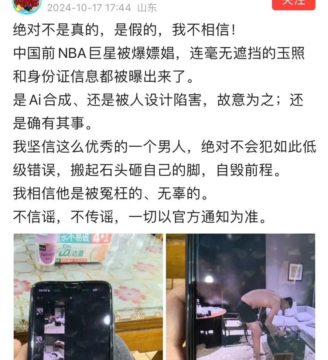 而且,现在AI技术越来越先进,是否有人利用AI技术P图,故意抹黑易建联?谁也说不准。