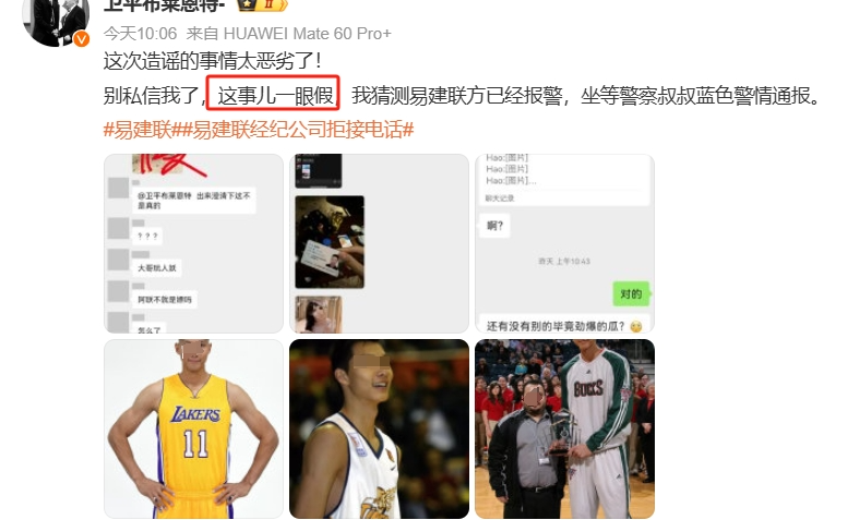 不少体育圈大V旗帜鲜明地支持易建联,认为这事儿一眼假,猜测易建联方已经报警。