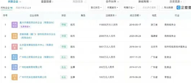 此外,企查查显示,易建联共关联16家企业,其中13家为存续状态,包括嘉兴丹青投资合伙企业(有限合伙)、薪火阵营文体教育(深圳)集团有限公司、上海壹球成名信息技术有限公司、成都趣睡科技股份有限公司等。