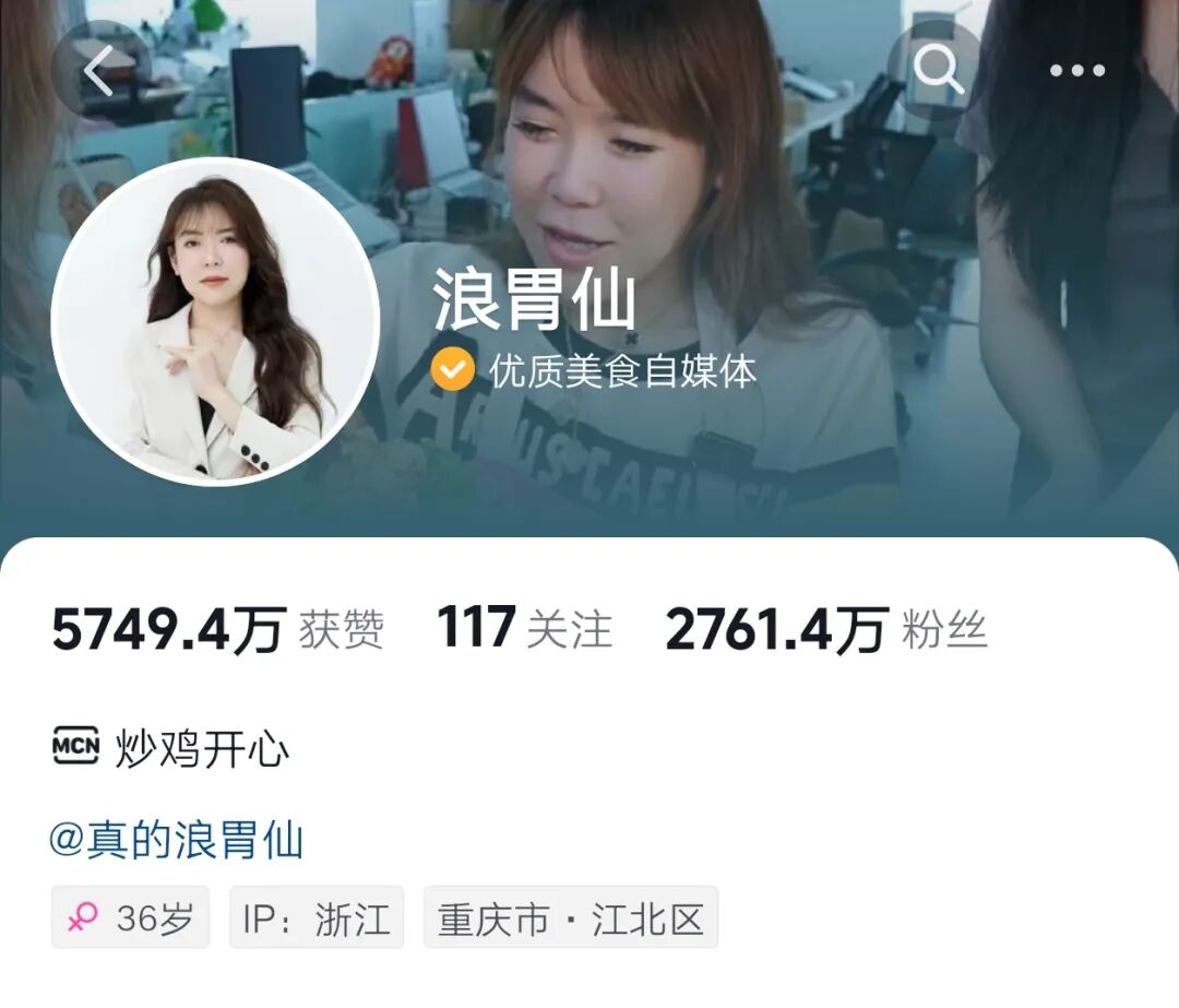 2019年,浪胃仙爆红,成为头部吃播网红,全网粉丝超6000万!