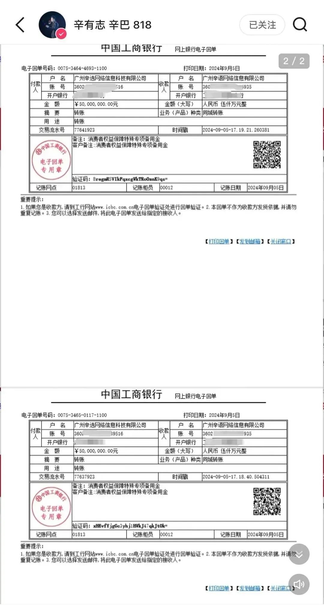 紧接着辛巴又“烧”了一把火,晒出1亿转账、兑现此前“帮三只羊赔付消费者”的诺言。