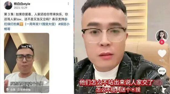 早在小杨哥徒弟红绿灯的黄被质疑“低俗”时,“桃白白style”就曾公开支持红绿灯的黄;前几天,三只羊被质疑“未缴纳罚款”时,“桃白白style”又高调为三只羊发声。