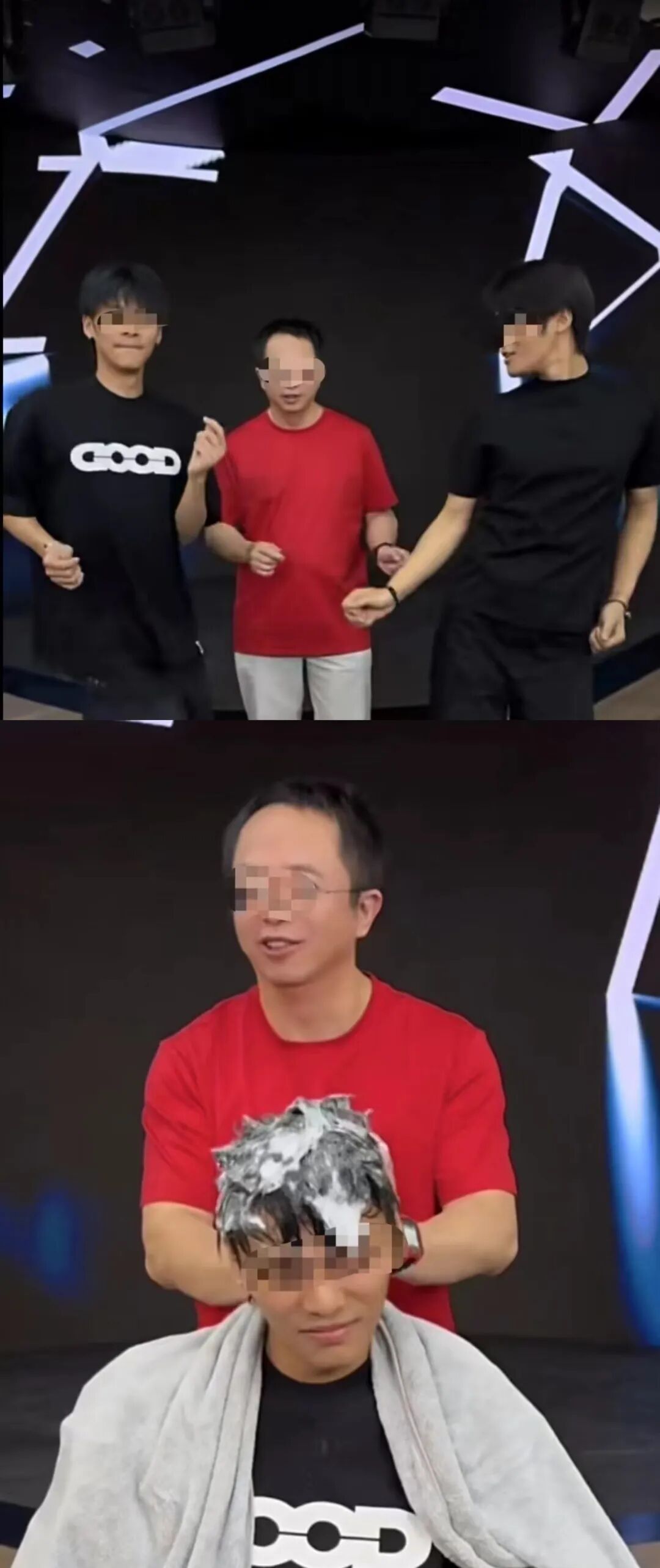 直播中,小杨哥带周鸿祎又是洗头、跳舞,又是引体向上,周鸿祎也为了节目效果,一改往日的总裁姿态,跟上大小杨哥的直播节奏。
