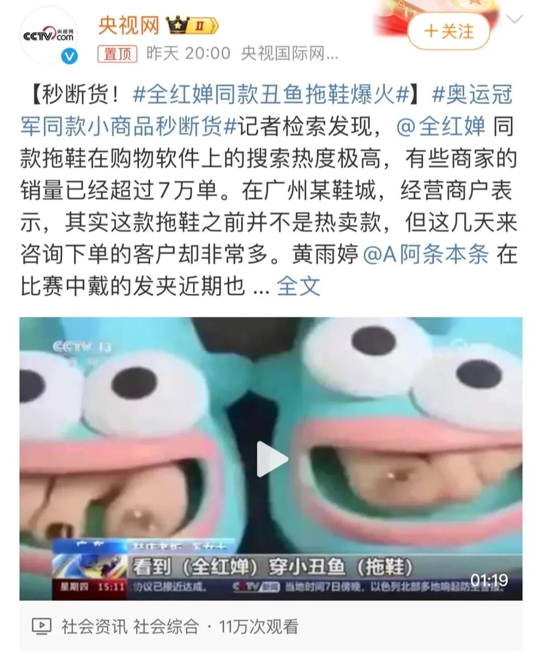 据不完全统计,在巴黎奥运会期间,光全红婵的同款商品就7次冲上了淘宝热搜TOP1,诸如丑鱼拖鞋、小乌龟挂件、麦门洞洞鞋等商品,都被全红婵以一己之力带火,吸引万千网友购买同款。