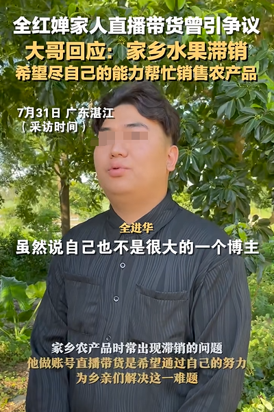 全红婵哥哥全进华能够坚守本心、一直走在助农的路上,其实在此前的多次回应中就能初见端倪。
