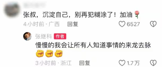 然而,比他恢复更新这件事更“劲爆”的是这条视频的评论区——在网友劝其不要继续犯错的评论下,张继科回复到:“慢慢的我会让所有人知道事情的来龙去脉。”