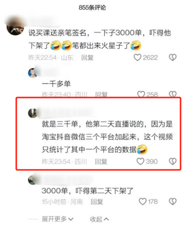 若真如粉丝所说,张继科卖课的直播首秀三平台卖了3000单,那么他这场首秀的销量就不是25万,而是近60万。