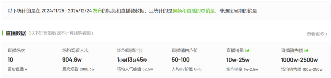 而涨粉的背后自然少不了流量到销量的转化,飞瓜数据显示,在近30天内,黄子韬账号共带货直播4场,带货销售额达到1000万-2500万元,带货品类以美妆产品为主。