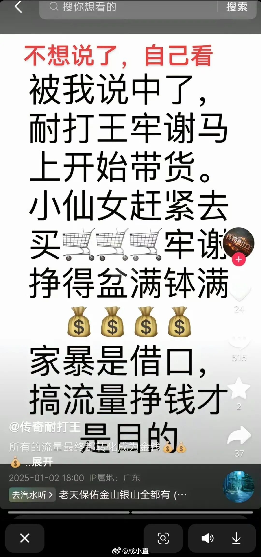 原本路过留下一句轻飘飘的“好可怜”的网友被小谢的带货成绩刺痛,不但开始弱化她的伤情,表示“根本没那么严重”,还怒喷她“变味了”“卖惨只为了圈钱”。