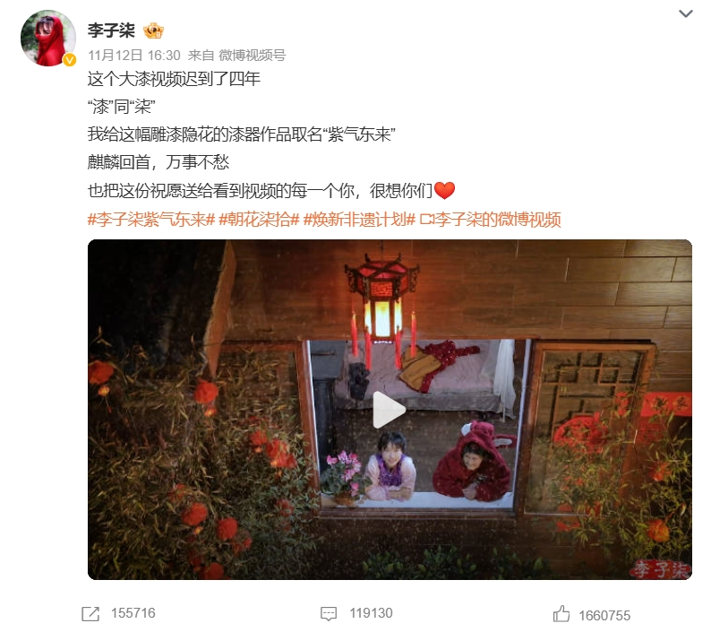 要知道,当时宣布回归的第一条“大漆视频”仅发布5小时后,微博平台的观看量就突破了1亿,而在其他平台如B站、抖音甚至YouTube,李子柒的影响力也丝毫不减当年。