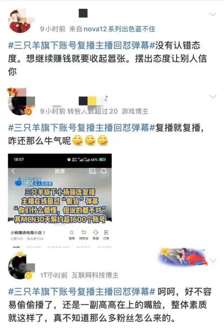 不少网友表示,用这样的态度就想复出赚钱,三只羊的算盘太响、三只羊主播的素质太低。