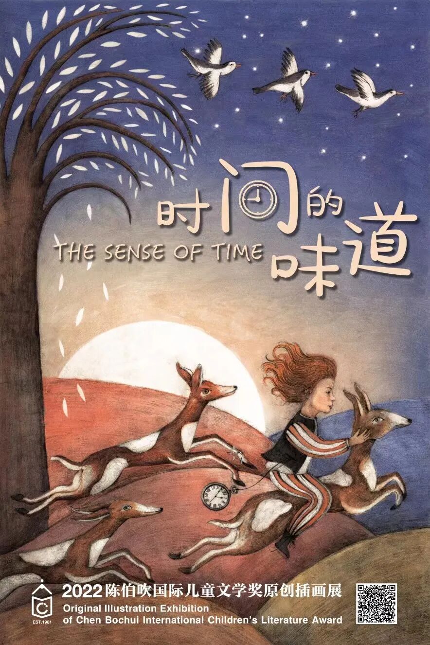 今年的主视觉海报由2021年插画展年度大奖获得者德国插画师索尼娅·达诺夫斯基(Sonja Danowski)创作。索尼娅延续其古典精致的创作风格,用细腻的笔触展现时间的韵律。昼夜交替,四季更迭,时间在飞奔的动物与成群的候鸟间跃动,红发小女孩仿佛是时间的精灵,引领我们一同体会那些蕴藏在时光中的人生感悟。