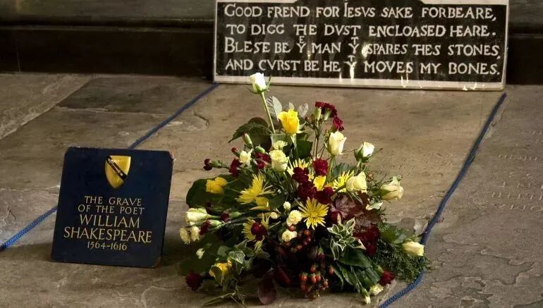 1616年4月23日,莎士比亚52岁生日这天,与世长辞。生前,他为自己撰写了墓志铭。