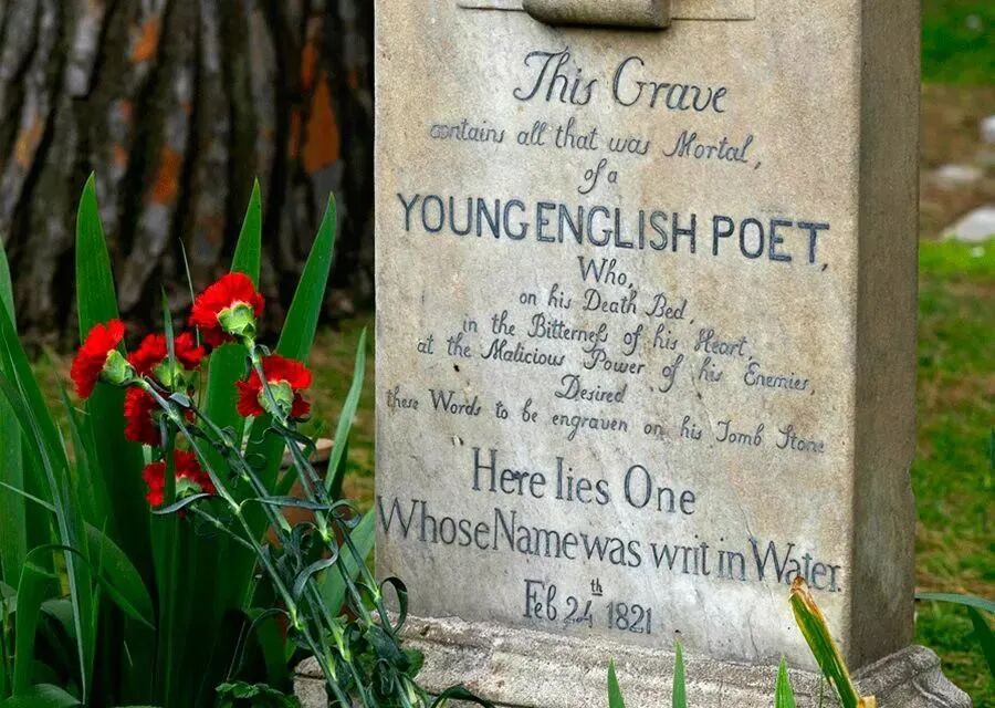 所以济慈的墓志铭有人翻译为:斯人眠于此,其名如浮云。