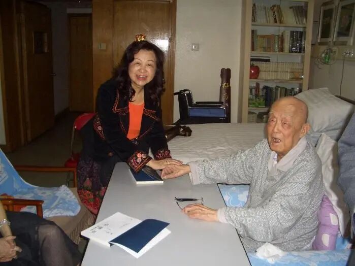 2007年金圣华(左一)于北京探访季羡林 [受访者 供图]