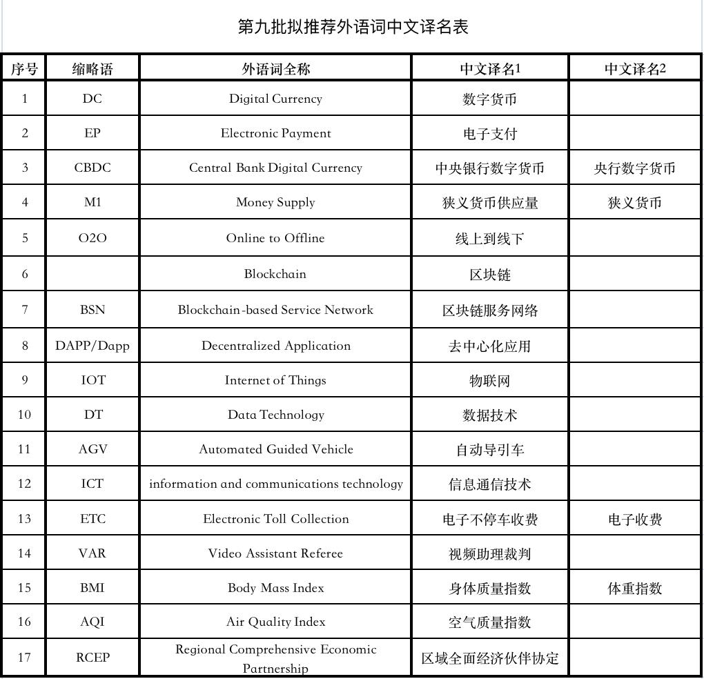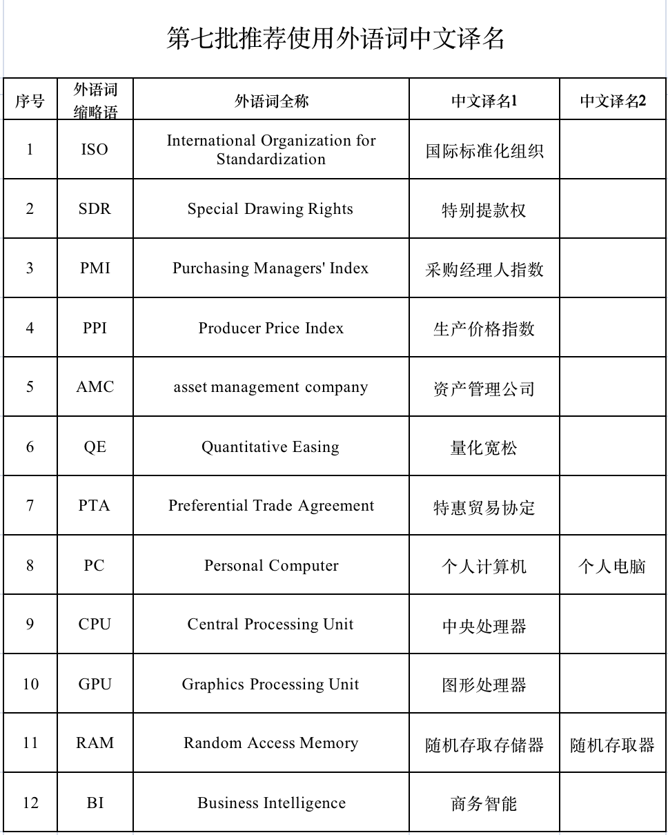 近日,外语中文译写规范部际联席会议专家委员会审议通过第十三批12组推荐使用外语词中文译名。