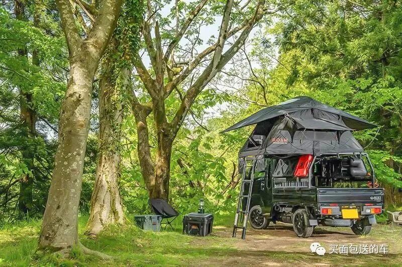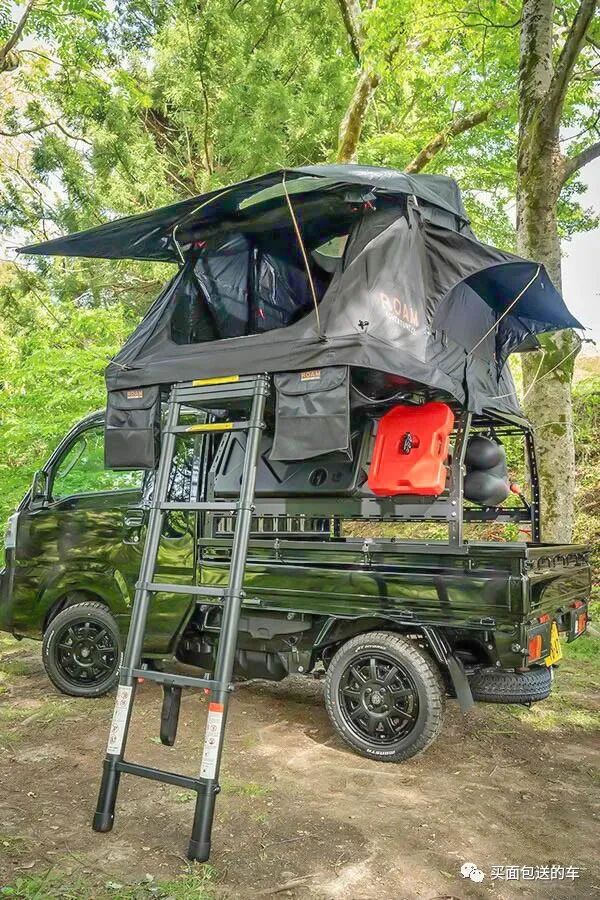 岛国的Exisle Line 工作室经销着进口汽车越野车改装件,在大发HIJET车型上,用SPIELER“骆驼”荷台拓展架对尾货箱进行了拓展改装,并实现轻卡作为户外露营车功能。
