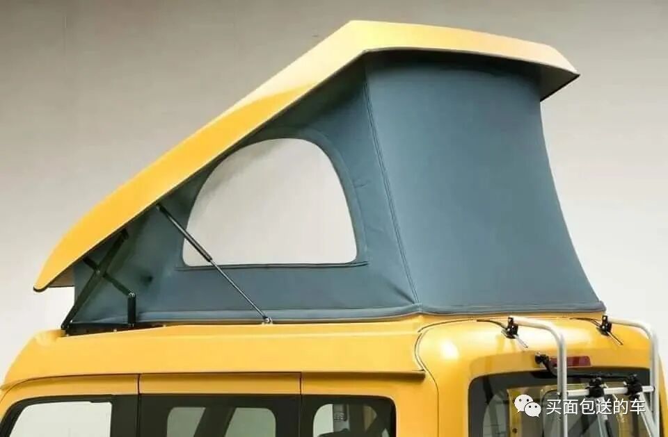 从外观上看,在基本款上添加:1车侧边帐,2尾门自行车托架,3车顶升顶机构。
