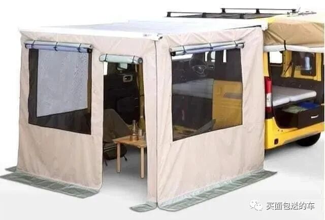 车侧天幕以及添加边帐幕的效果,在侧面拓展出营地空间。