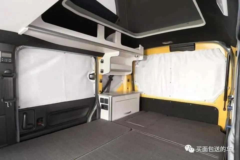 车顶侧置物柜,以及磁性安装的车窗遮光布。
